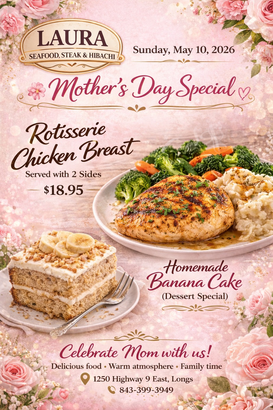 Join us on Mother's Day and treat your mom to a delicious meal!